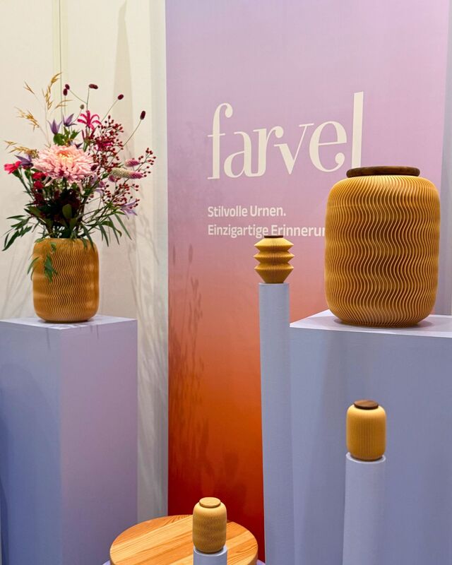 Farvel bringt frischen Wind in ein Thema, das oft ausgeklammert wird: den Abschied. Die beiden Gründer:innen Katharina Hogg-Erdrich und Sebastian Kuhn-Prohic haben es sich zur Aufgabe gemacht, ästhetisch gestaltete, nachhaltige Urnen zu entwickeln – individuell, biologisch abbaubar und würdevoll.