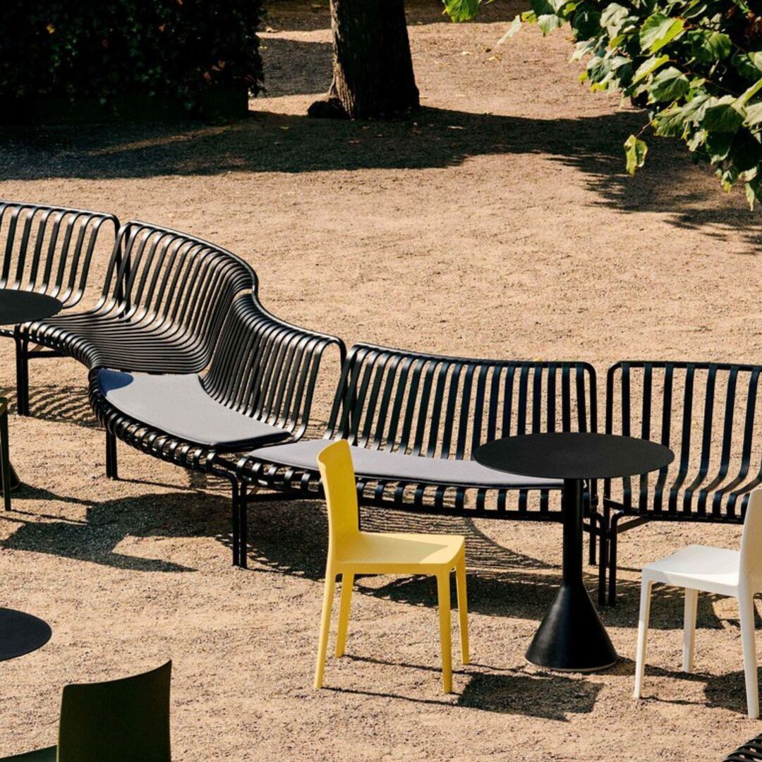 Le Palissade Park Dining Bench a été conçu par le duo français Ronan et Erwan Bouroullec et est un banc modulaire pour l'extérieur. Le cadre incurvé est disponible en deux variantes qui se plient dans deux directions différentes, de sorte que les bancs peuvent être installés vers l'intérieur, vers l'extérieur ou dans une combinaison des deux. En reliant au moins deux bancs, il est possible de composer des sièges individuels en forme de cercles, de vagues et d'arcs. Le design élégant est empreint de la même géométrie symétrique et du même langage graphique que le reste de la gamme Palissade et a été conçu pour s'intégrer sans effort dans un paysage naturel ou un environnement urbain avec la même simplicité visuelle. L'acier thermolaqué a été spécialement conçu pour l'extérieur et est recouvert d'une couche d'apprêt protectrice pour l'extérieur afin d'assurer une durabilité et une résistance optimales et de garantir une longue durée de vie. Disponible dans une sélection de couleurs, le Park Dining Bench est idéal pour créer des configurations de sièges uniques dans les jardins, les parcs et les espaces publics.