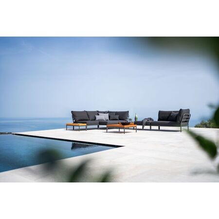 J'aime particulièrement le fait que les languettes Velcro permettent de combiner les modules "Level" et "Level 2" de différentes manières, ajoutant une atmosphère sereine à n'importe quel espace extérieur. Pour vous épargner les affres du choix, j'ai rassemblé pour vous plusieurs ensembles de salons. Cette sixième combinaison se compose d'un module d'angle étroit avec accoudoir gauche, d'un module d'angle étroit avec accoudoir droit et d'une table carrée.