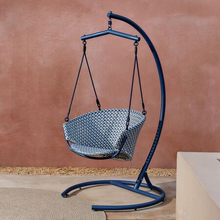 The Saliga hanging chair combines elegance and comfort and invites you to create a cozy corner in your outdoor area. With its aluminum frame and hand-woven synthetic rattan, it combines the necessary strength and lightness to enjoy the outdoors in style. The synthetic rattan mimics the look of wicker while being weatherproof and easy to clean. The e-coated steel frame provides protection against rust and corrosion, and the polyester powder coating ensures UV resistance. Also included is a chain with adjustable links and a compatible carabiner for easy and secure attachment.