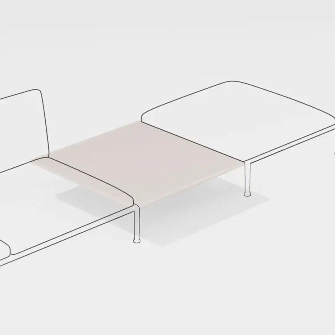 Die Kollektion besteht aus einem Stuhl, Couchtischen, einem Sofa und einem Sessel, die sich durch klare Linien und eine raffinierte Silhouette auszeichnen, die ein zeitloses Design verleihen, das sich an eine Vielzahl von Umgebungen anpasst (Wohn- und Objektbereich). Ein wiederkehrendes Merkmal der Kollektion ist die druckgegossene Verbindung, an der die stranggepressten Aluminiumprofile befestigt sind. Dieser Rahmen verleiht einen Hauch von Modernität und Leichtigkeit und ermöglicht gleichzeitig verschiedene Anpassungsmöglichkeiten