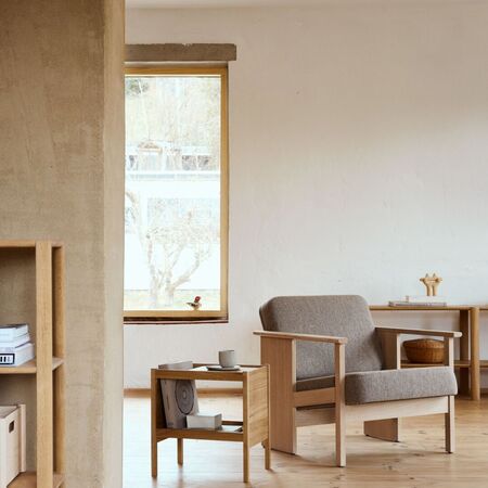 la chaise de salon compacte de Form & Refine est un meuble très spécial avec ses panneaux de bois distinctifs et son assise relaxante en lin rembourré avec de fins détails en tricot. Par excellence, il combine des matériaux durables et purs et des formes douces et ergonomiques, ce qui en fait un meuble polyvalent dans votre maison qui vous offre un confort généreux malgré son faible encombrement.